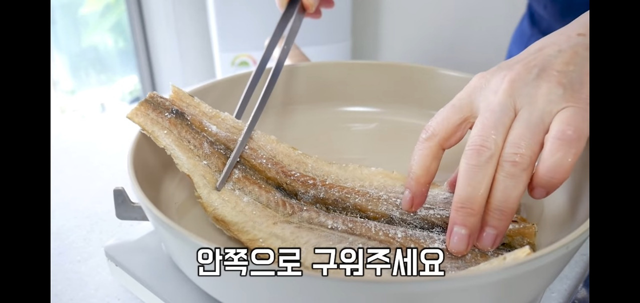 황태의 밑면이 잘 익었는지 확인하면서 조심스럽게 뒤집어 주세요!