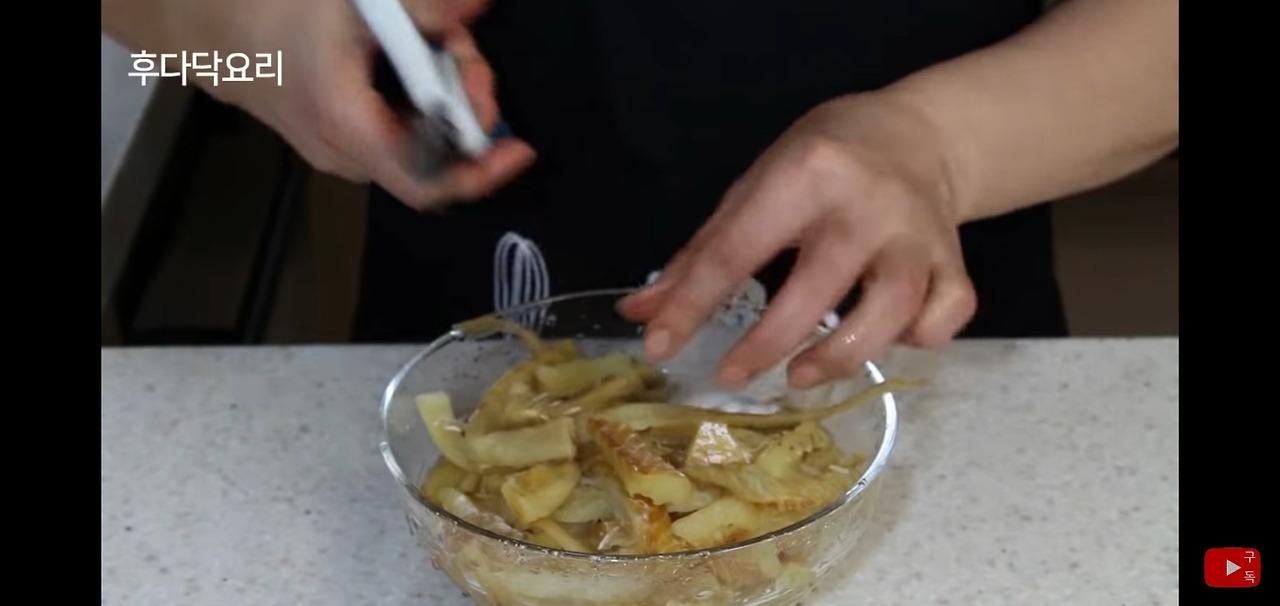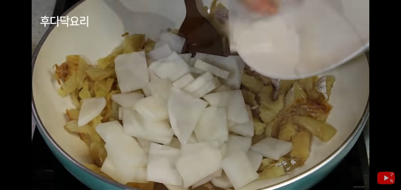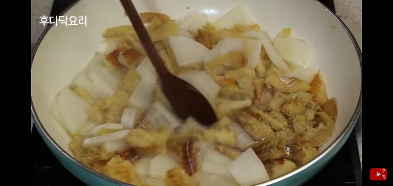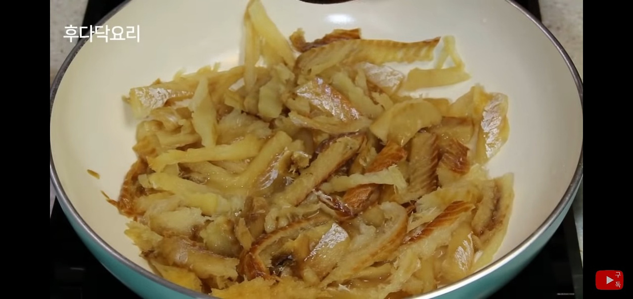 이제 북어국을 맛있게 끓이기 위해 황태포를 익혀보겠습니다.