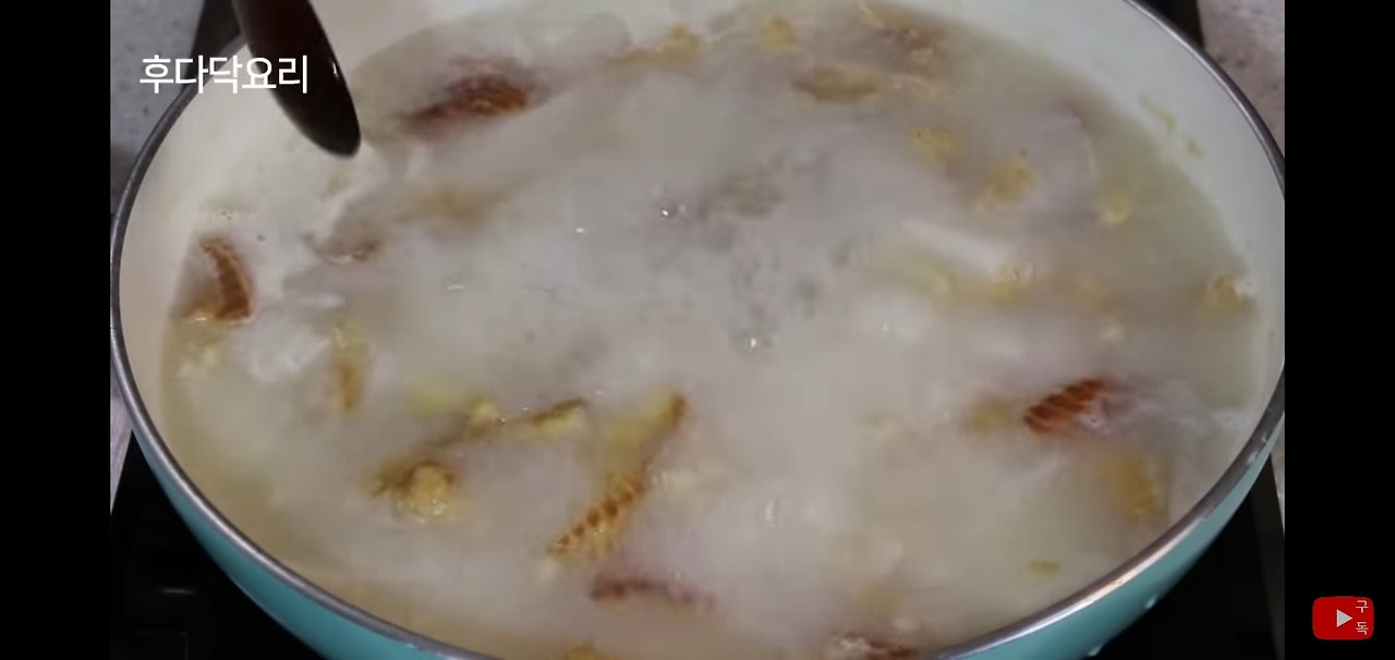 그 다음 잘 섞어가며 뽀얀 육수가 우러나도록 해주세요.