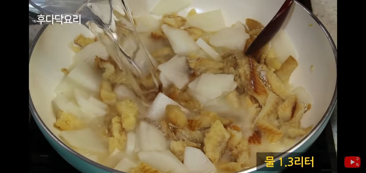 국물이 진하게 우러났다면, 물 1.3L를 그대로 추가한 후 뚜껑을 덮어주세요.