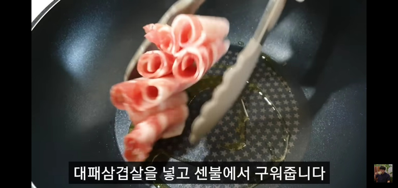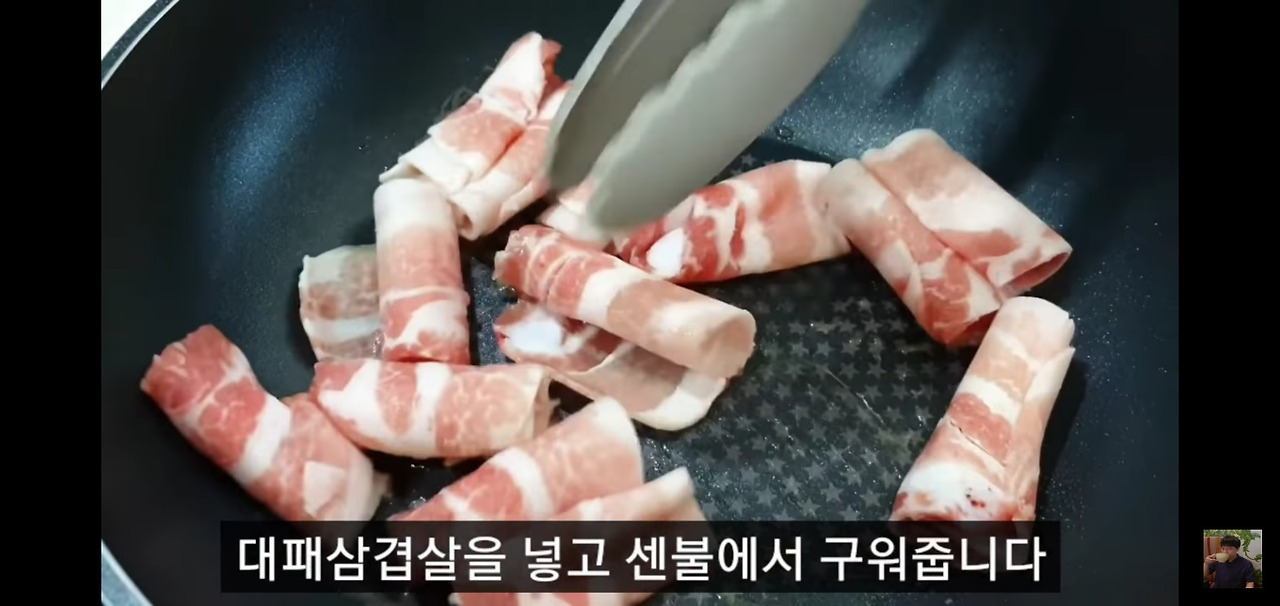 대패삼겹살 숙주볶음 만드는법 ③ 대패삼겹살 구워주기