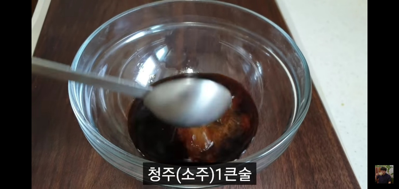 그다음, 설탕 1스푼과 청주(혹은 소주) 1스푼을 추가해주세요.