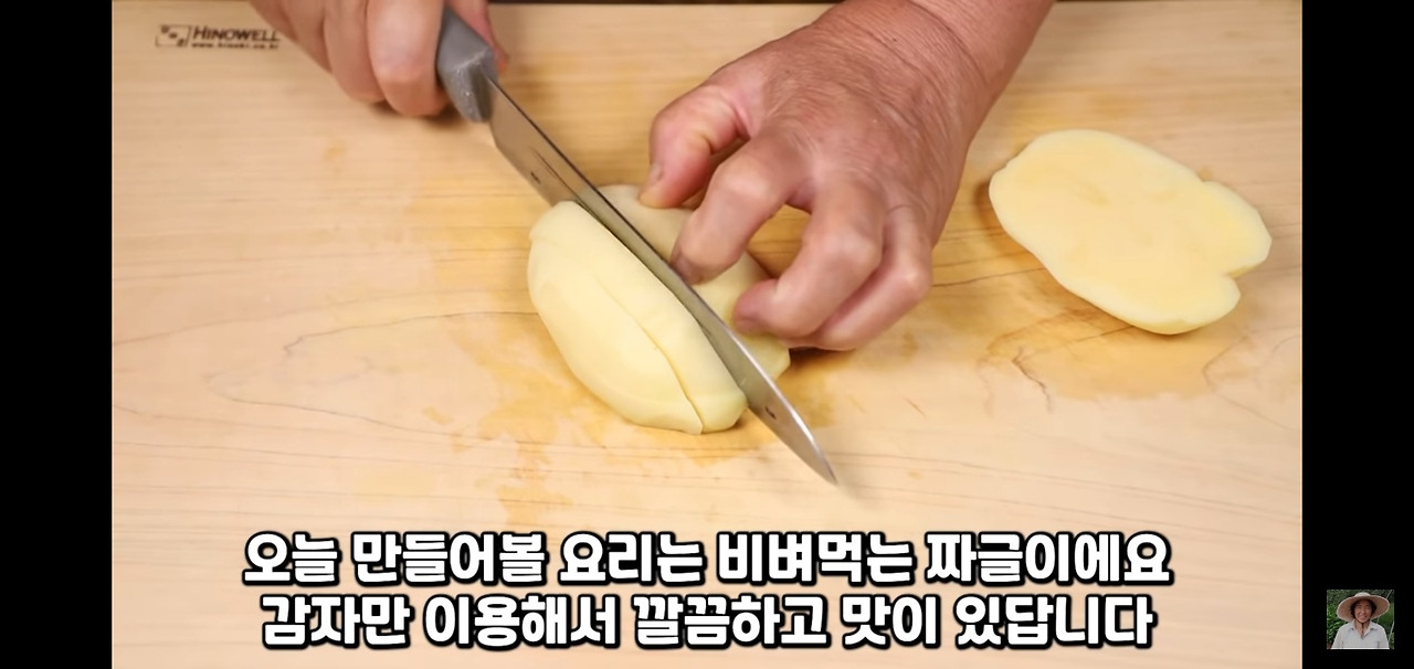 그다음, 밥에 비벼 먹기 좋은 크기로 감자를 잘라주세요.