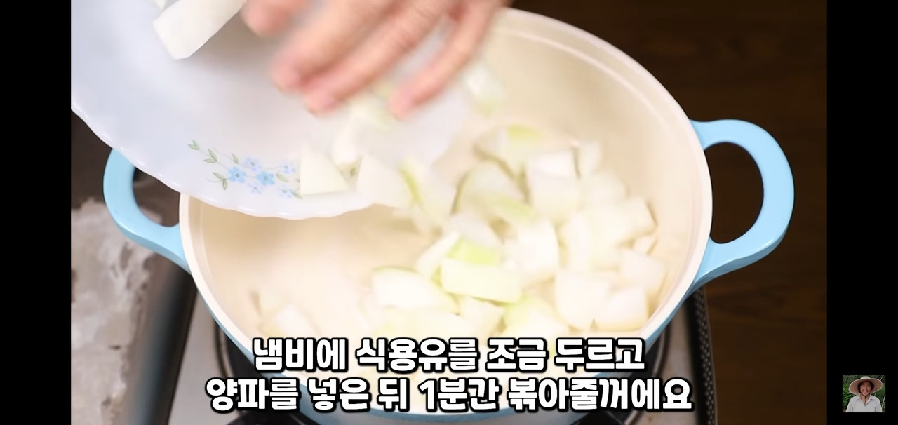 냄비에 식용유를 충분히 둘러주시고, 불은 중불로 올려주세요.
