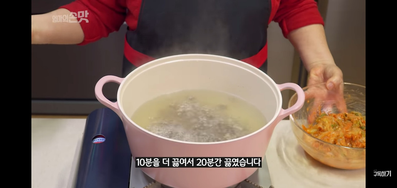 다시마 한 조각을 함께 넣고, 강한 불에서 20분간 끓여 주세요.