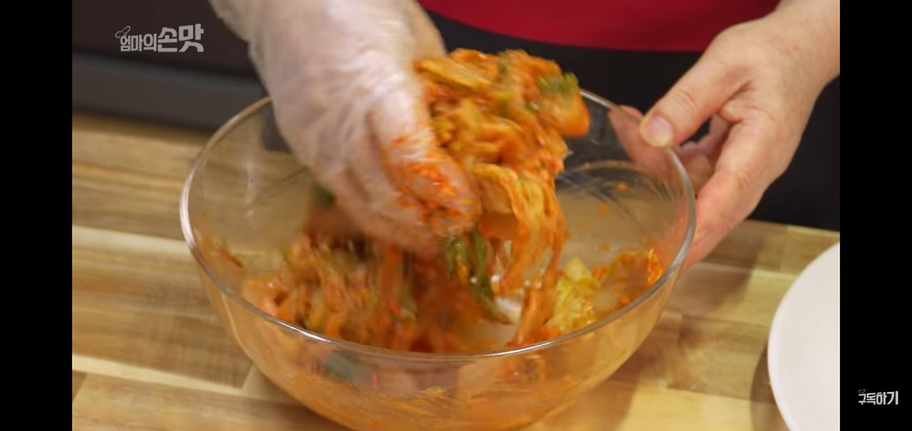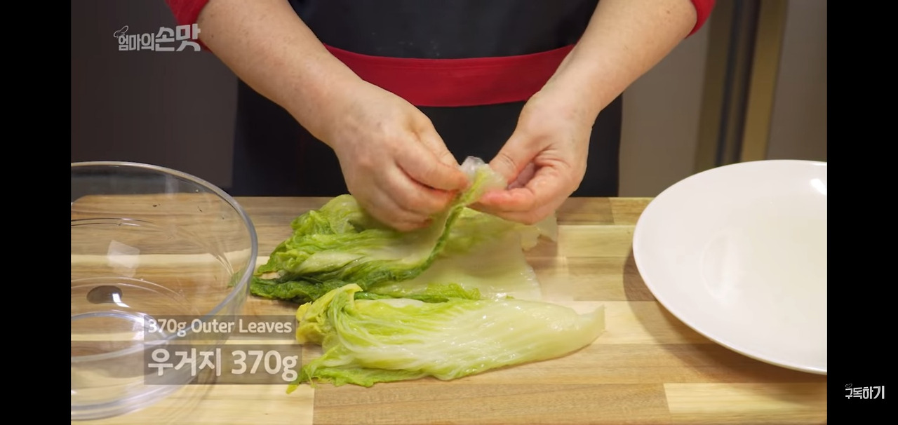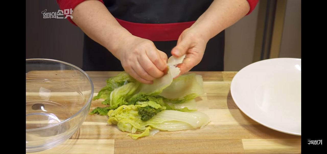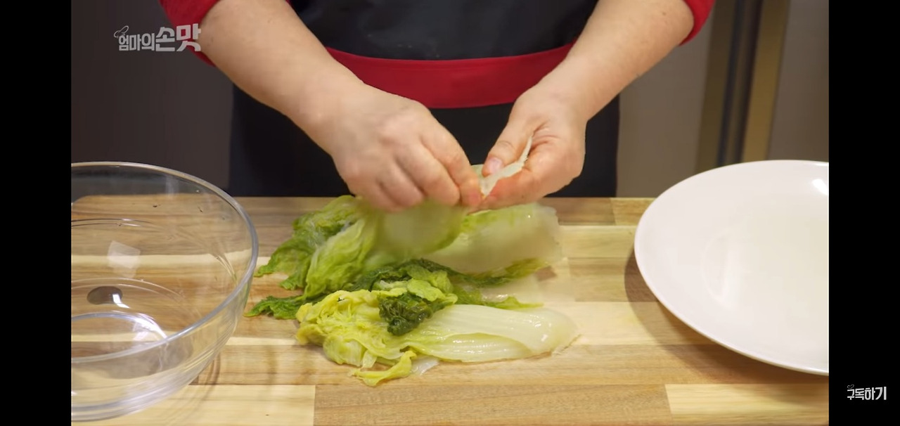 우거지는 손으로 먹기 좋은 크기로 찢어 주세요.