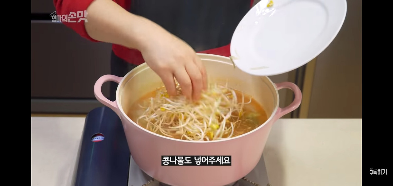 우거지 된장국에 깊은 맛을 더해줄 참치액 3큰술과 콩나물도 함께 넣어주세요.