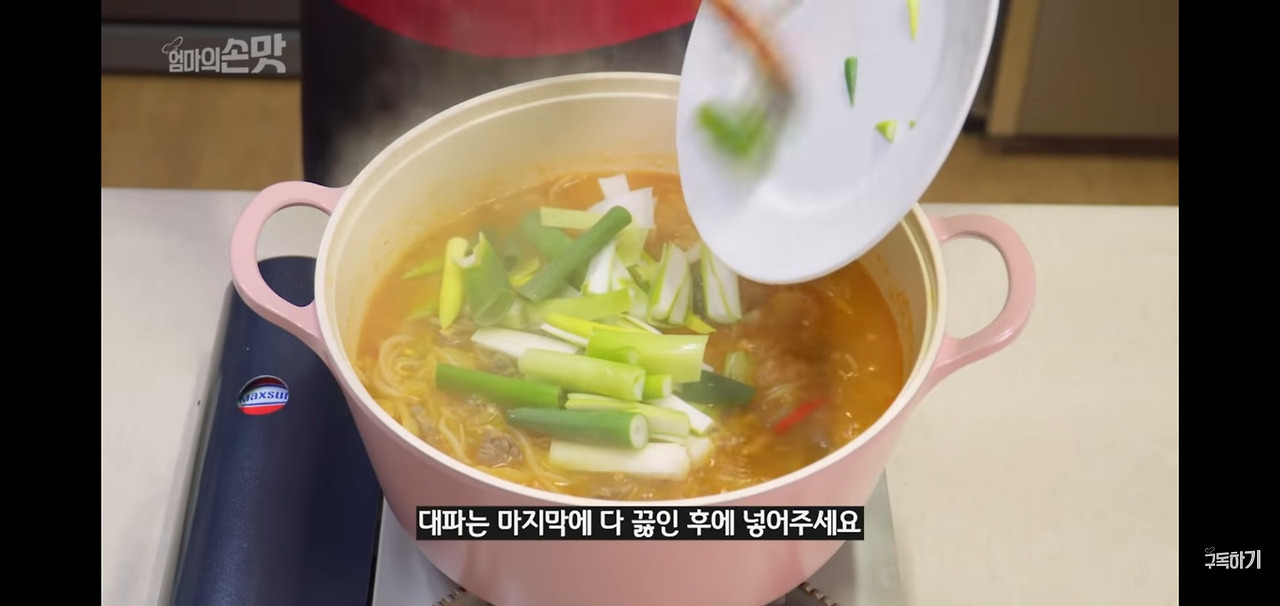 콩나물이 충분히 익을 때까지 끓인 후, 대파를 넣고 한 번 더 끓여주면 오늘의 우거지 된장국이 완성됩니다!