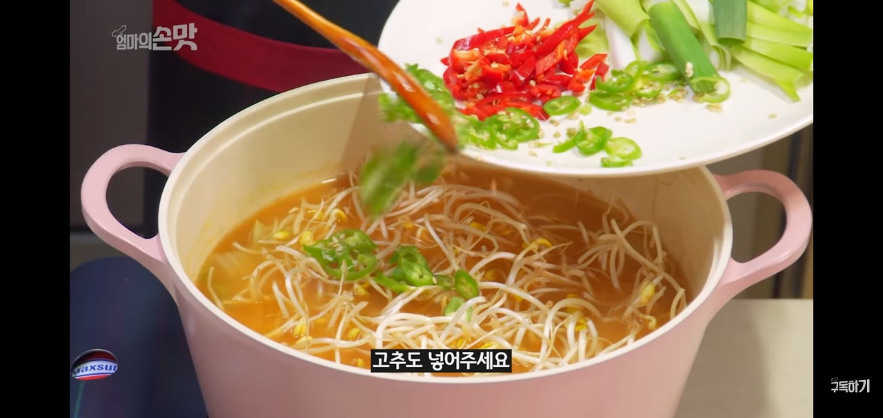 고추도 함께 넣고 끓여주세요.