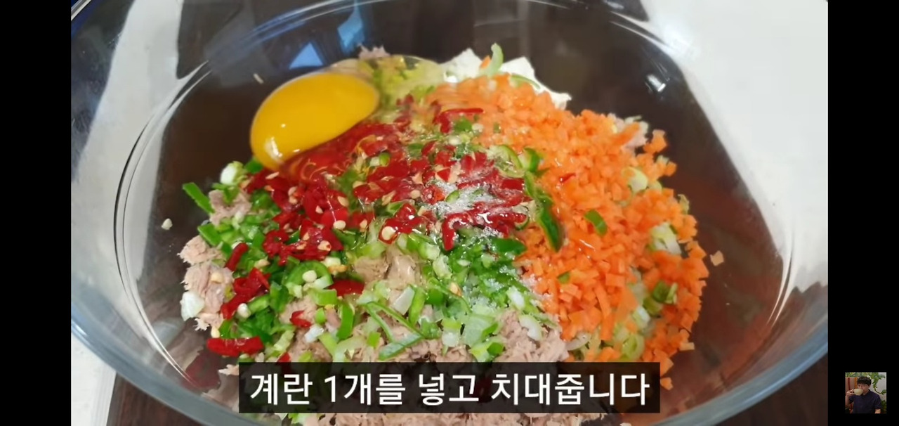 다져놓은 대파, 당근, 청양고추, 홍고추를 넣어주세요.