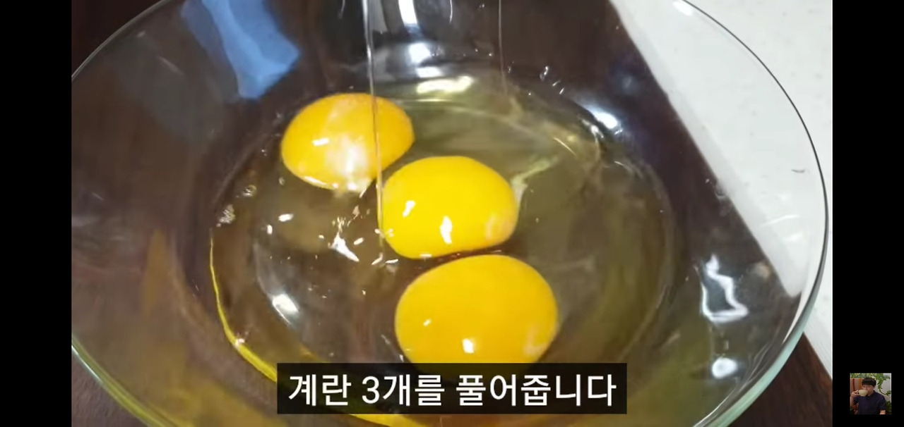 먼저 계란 3개를 그릇에 깨서 잘 풀어주세요.