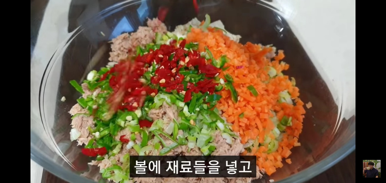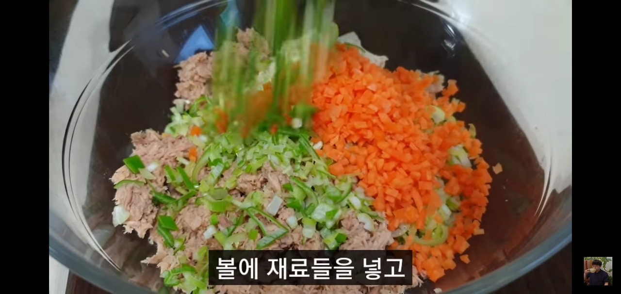 이제 섞어둔 두부와 참치에 준비한 재료들을 넣어주세요.