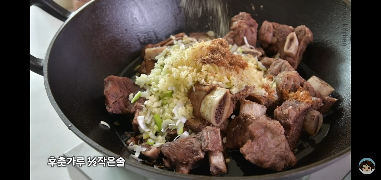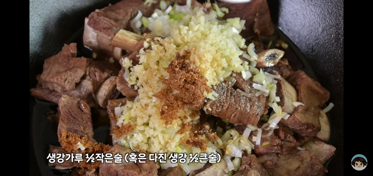 소갈비찜의 잡내를 잡아주고 맛을 더해 줄 생강가루와 후추가루를 조금 넣으면 더욱 맛있는 소갈비찜이 완성돼요!
