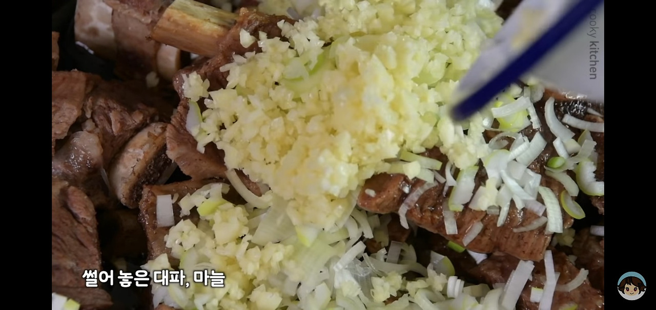 앞서 썰어 둔 대파와 마늘도 함께 넣어 주세요.