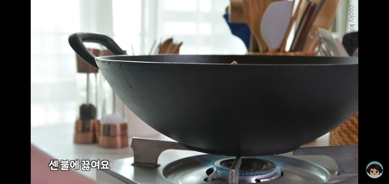 불을 강하게 올려 물이 끓기 시작하면 위에 뜨는 거품을 제거해 주세요.