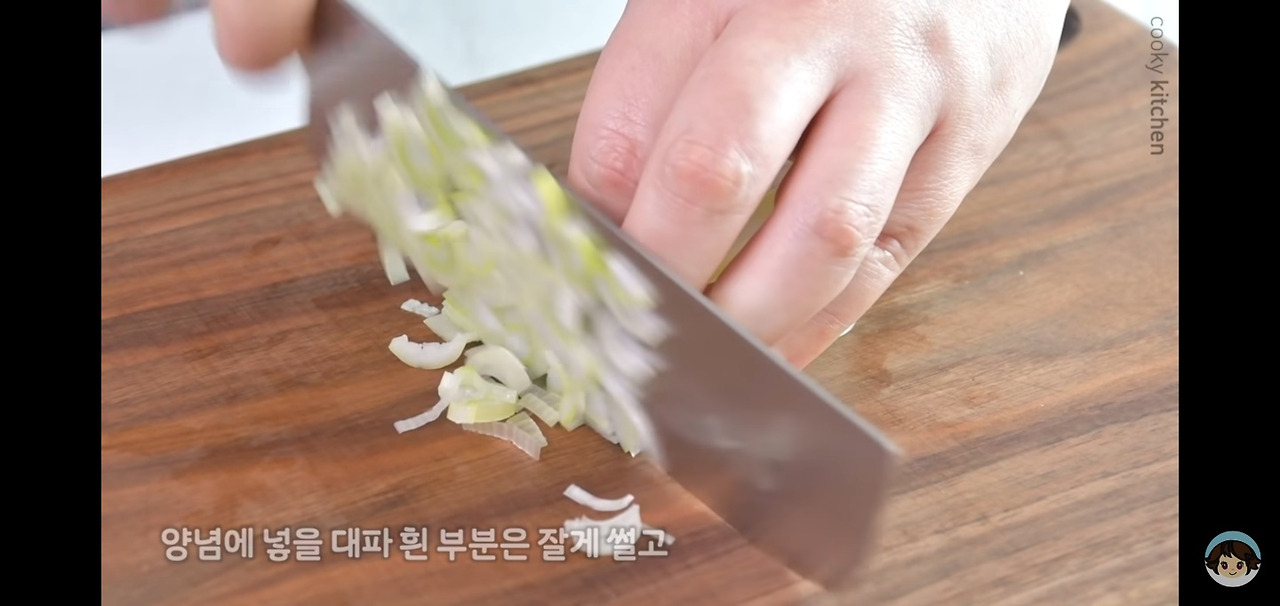 대파의 흰 부분은 이렇게 송송 썰어 주세요.