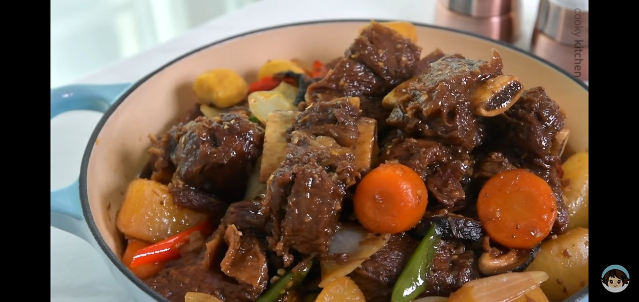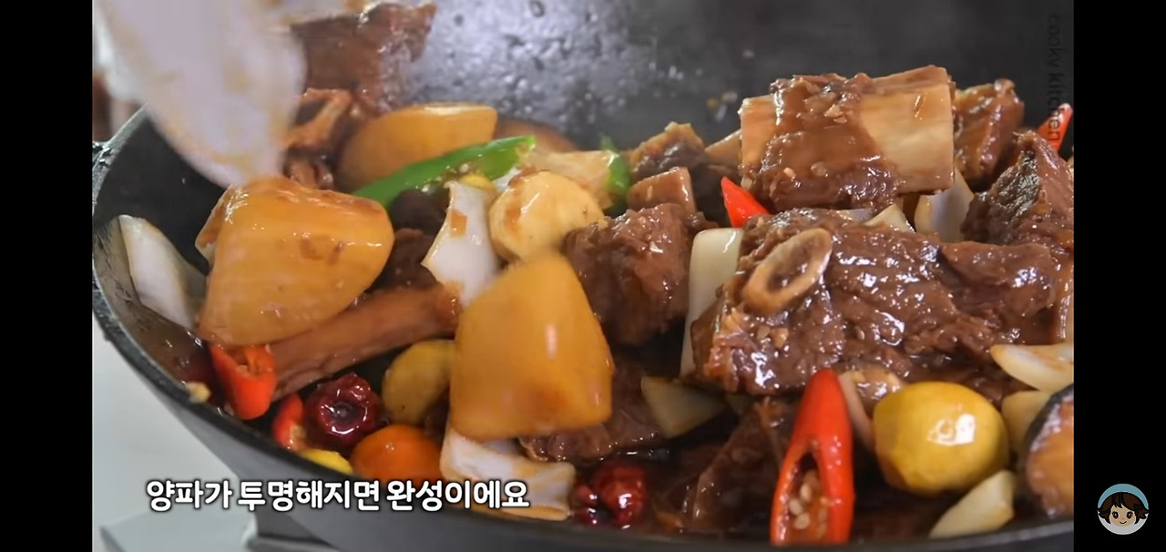 이렇게 끓이다가 무가 완전히 익고 양파가 투명해지면, 오늘의 소갈비찜 황금레시피가 완성된 거예요!