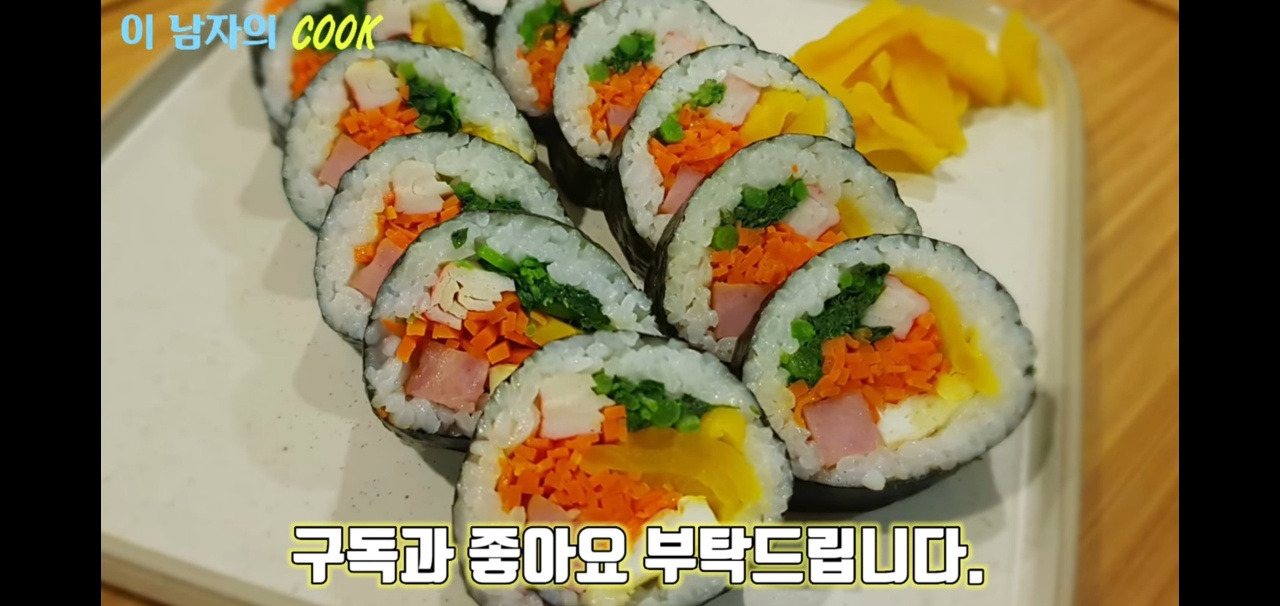 이로써 오늘의 김밥을 맛있게 만드는 방법이 끝났어요!