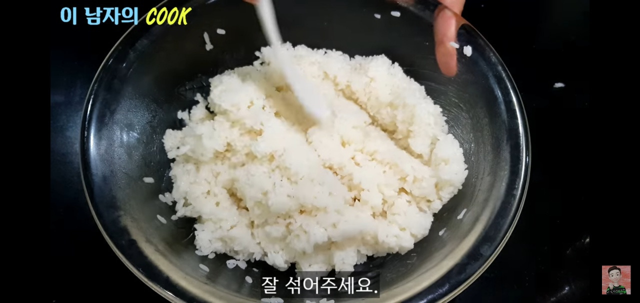 밥 3인분에는 단촛물 1.5스푼을 넣어주세요. 12줄 분량을 만들 경우, 준비해둔 단촛물을 모두 넣어주시면 됩니다.