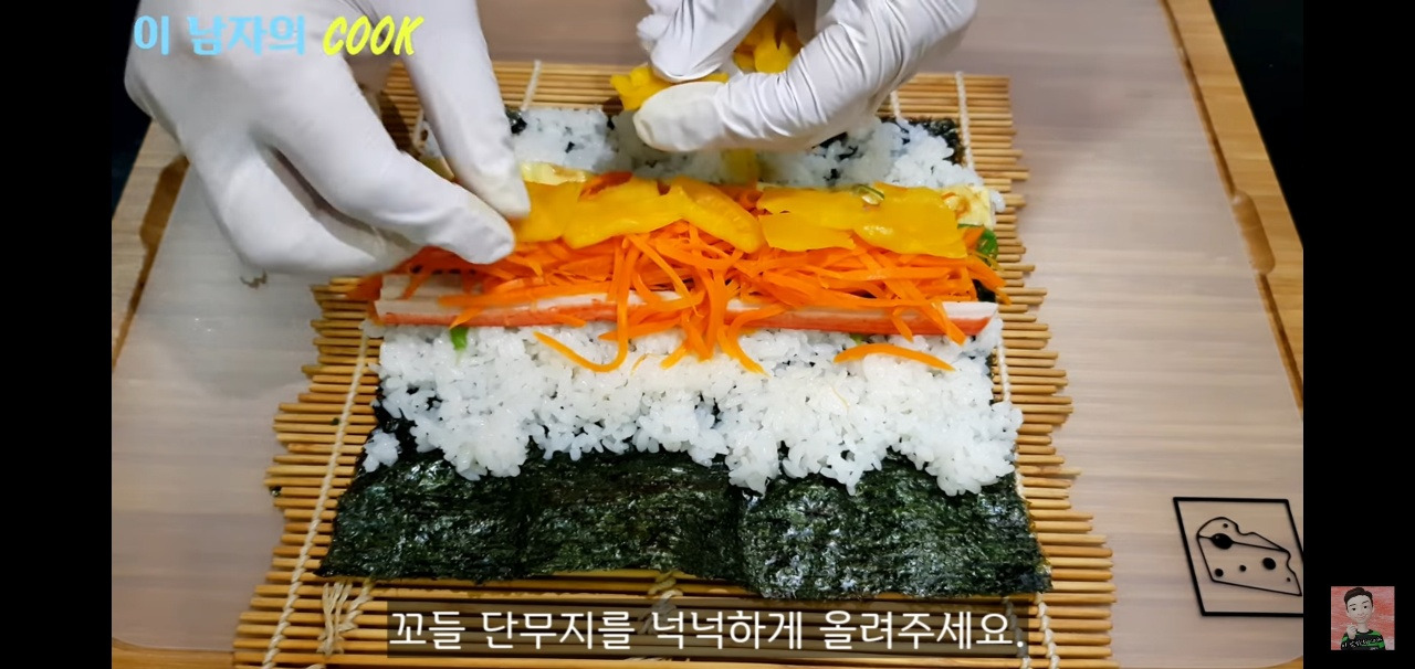 맛있고 아삭한 단무지도 김밥에 넉넉하게 넣어주세요.