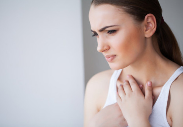 역류성 식도염으로 식도가 손상되면 목에 통증을 느끼게 됩니다. 이는 강한 산성의 위산이 식도로 역류할 때 식도를 녹여서 궤양이나 염증을 일으키게 되고 그 부위에 통증을 유발하기 때문입니다. 이 때는 침을 삼킬 때 조이는 듯한 통증을 느끼기도 하고, 목구멍에 뭔가 걸려 있는 것 같은 이물감 등의 증상을 동반하게 됩니다.