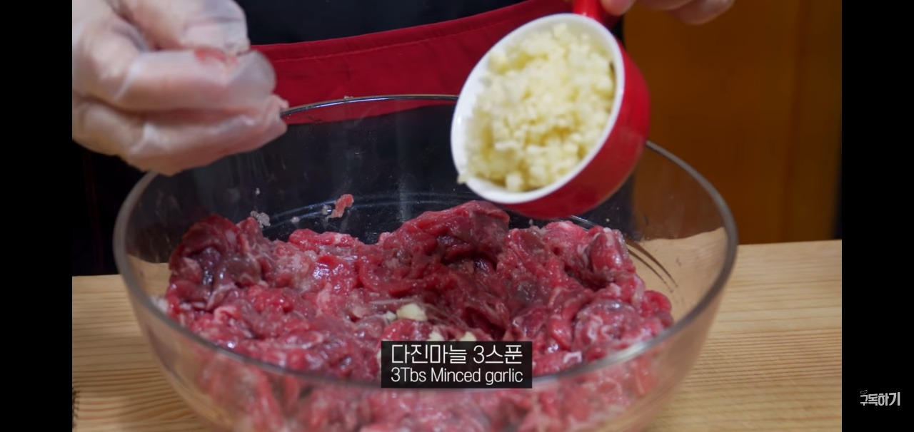 그다음, 다진 마늘 3스푼도 넣어주세요.