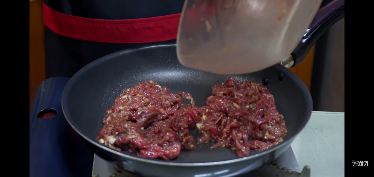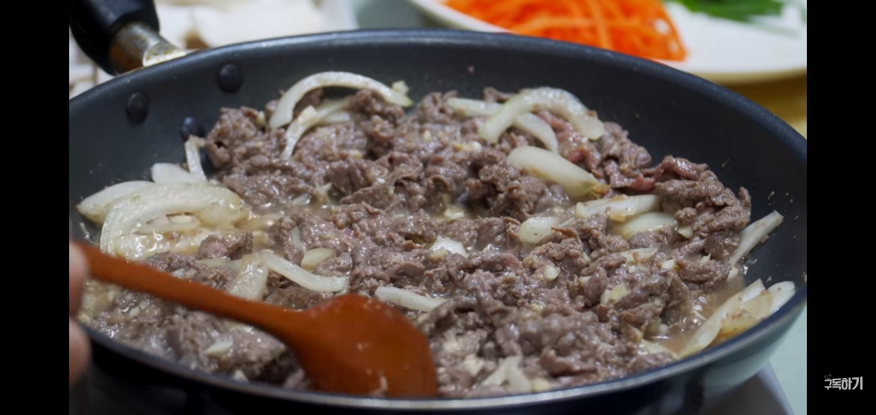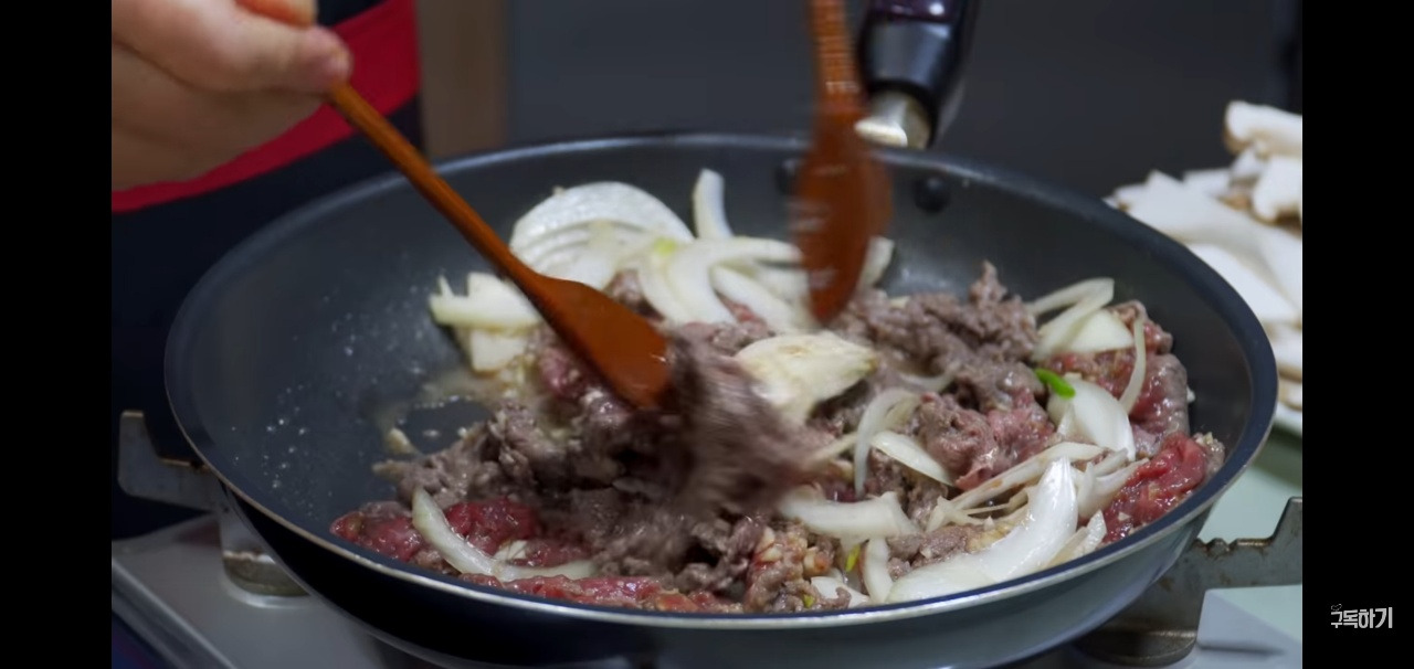 이제 버섯 불고기 레시피의 다음 단계인 고기를 익혀볼까요?