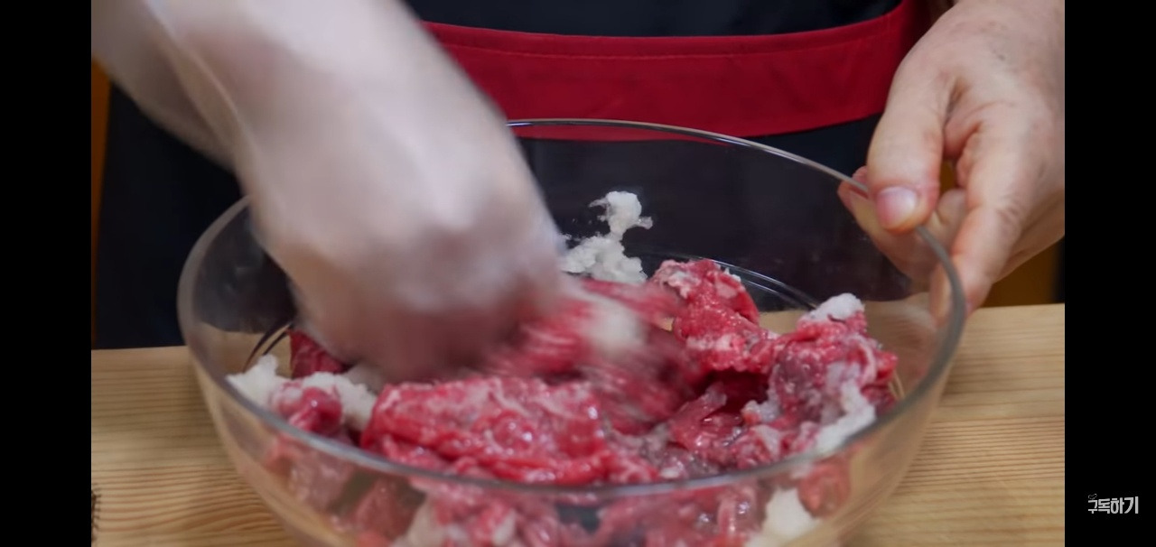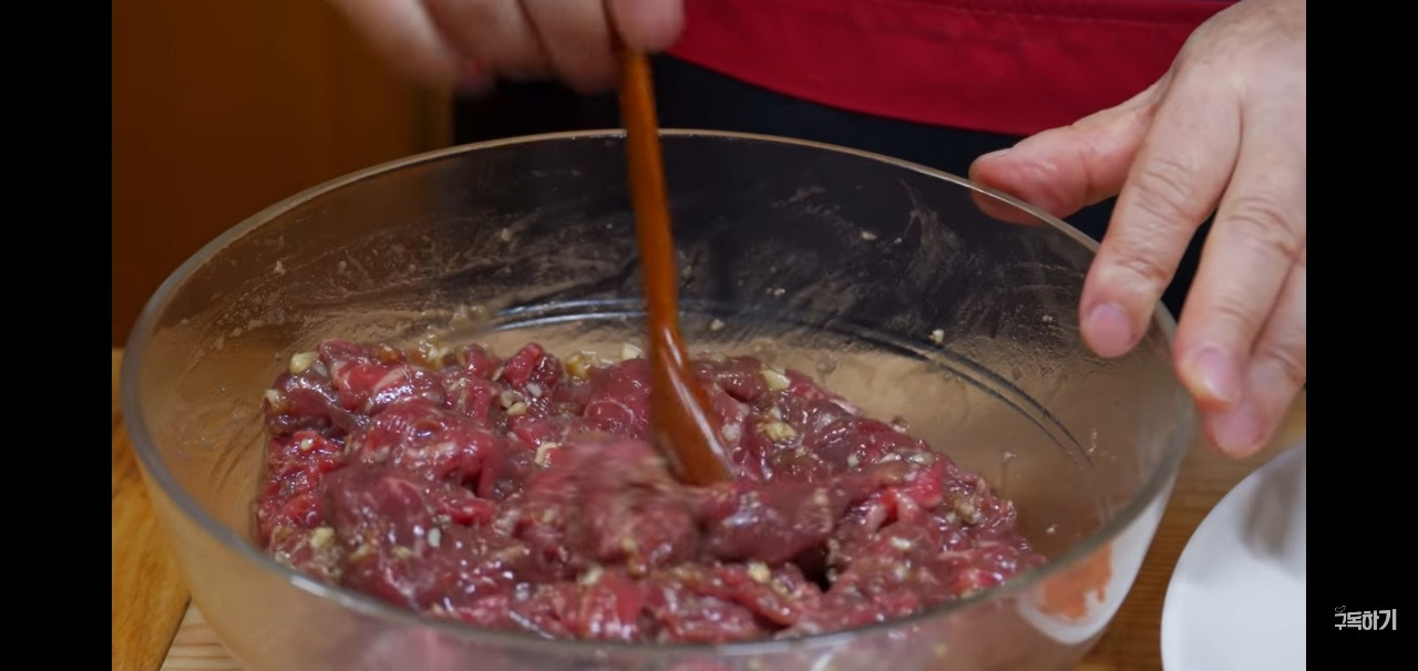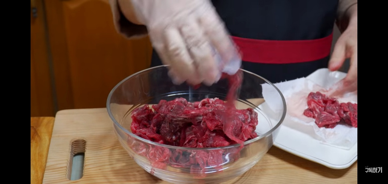 이제 버섯 불고기 레시피에 들어갈 고기를 양념에 재워줍시다.