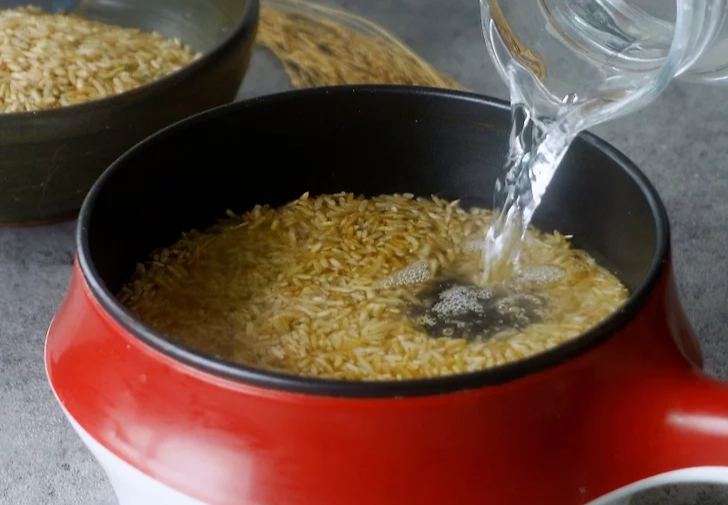 1. 먼저 현미를 깨끗이 씻은 후, 물과 현미의 비율을 약 1:1.2 정도로 맞춰주세요. 예를 들어, 현미 2컵을 사용할 경우 물은 약 2컵 반 정도가 적당해요.