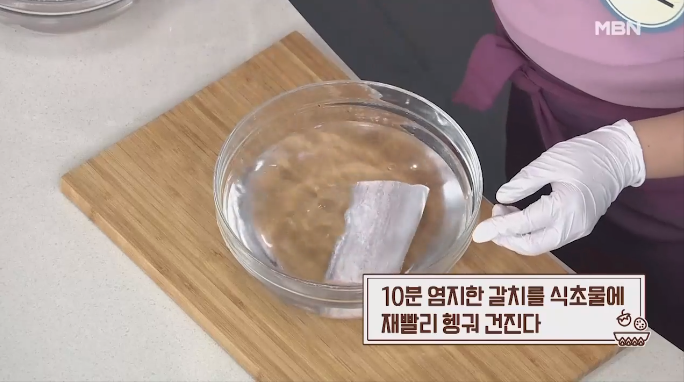 식초를 푼 물에 갈치를 담그면 살균 효과까지 있어 더욱 위생적으로 조리할 수 있어요. 다만, 식초의 신맛이 배지 않도록 너무 오래 담가두지 말고 재빨리 건져내는 게 중요해요.