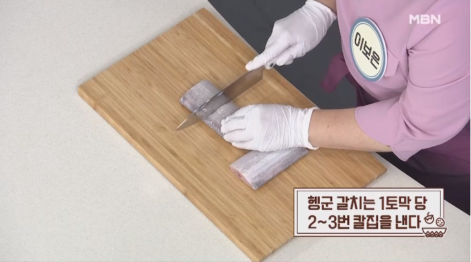 갈치구이를 더욱 맛있게 만드는 또 하나의 중요한 포인트는 바로 칼집을 내는 거예요! 칼집을 넣어주면 열이 골고루 전달되어 속까지 빠르게 익어 더욱 맛있게 구워진답니다.