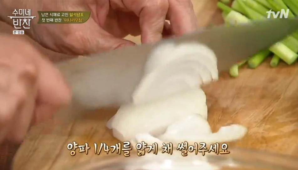 6. 양파 1/4개는 가늘게 채를 썰어 준비해 주세요.