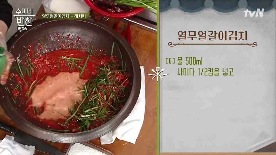 얼갈이김치를 간단하게 담그고 싶으시다면, 찐 감자와 배, 고추, 고춧가루, 멸치액젓, 새우젓, 매실청, 마늘 등을 물과 함께 갈아서 양념 국물을 만들면 아주 편리해요. 오늘은 ‘수미네 반찬’에서 소개된 얼갈이김치 담그는 요령과 열무 얼갈이김치를 맛있게 만드는 황금 비율 레시피를 전해드릴게요.