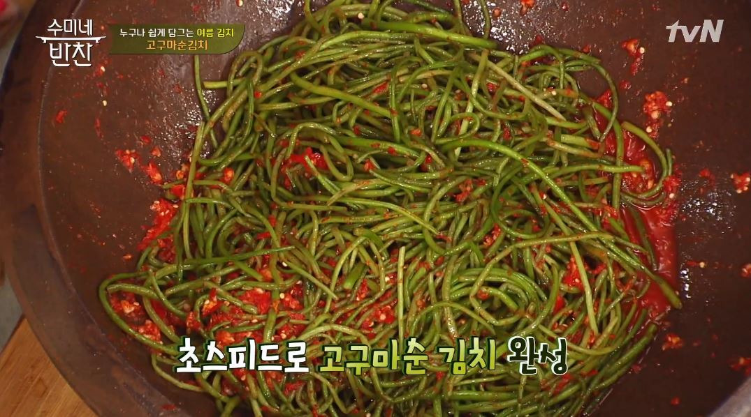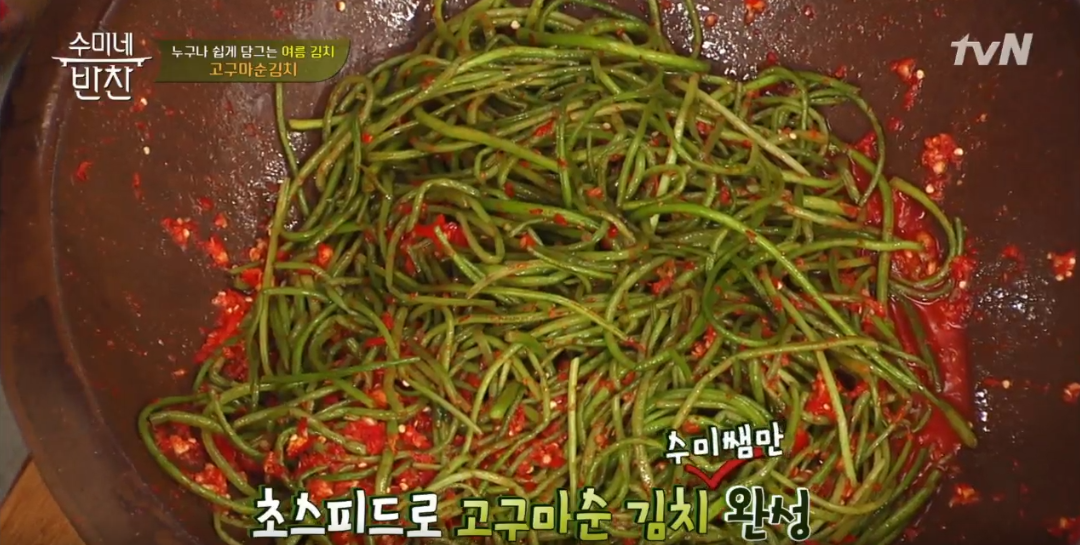 수미 선생님도 여름철 별미로 고구마순 김치를 강력 추천하셨어요! 오늘 알려드린 고구마순 김치 레시피 꼭 한번 따라 해보시고, 장마철엔 특히 건강 관리 잘 챙기시길 바랄게요. 시원하고 아삭한 고구마순 김치로 입맛도 살리고, 건강도 지켜보세요.