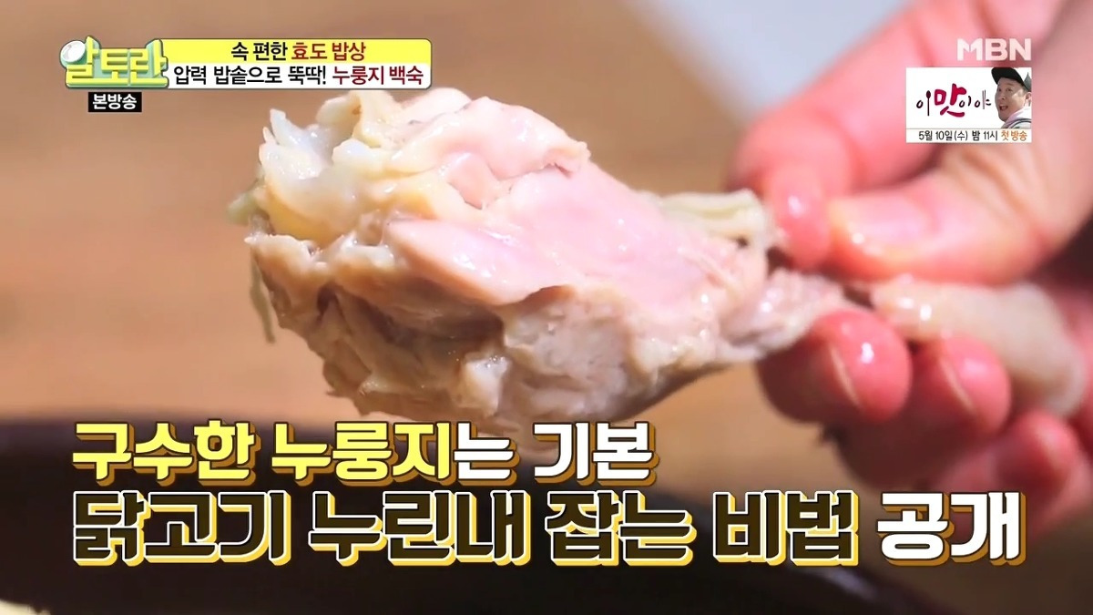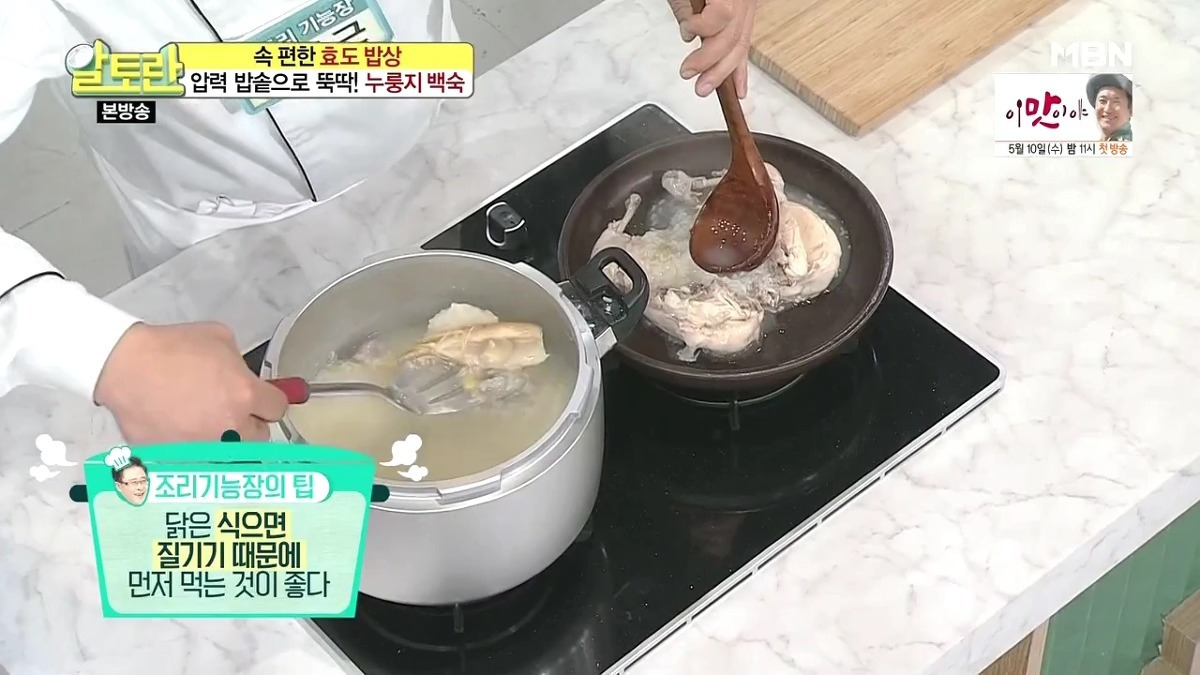 누룽지를 더욱 바삭하게 즐기고 싶다면, 죽을 덜어낸 뒤 누룽지만 따로 한 번 더 익혀도 좋습니다. 압력솥으로 만드는 닭백숙 황금 레시피, 생각보다 간단하죠?