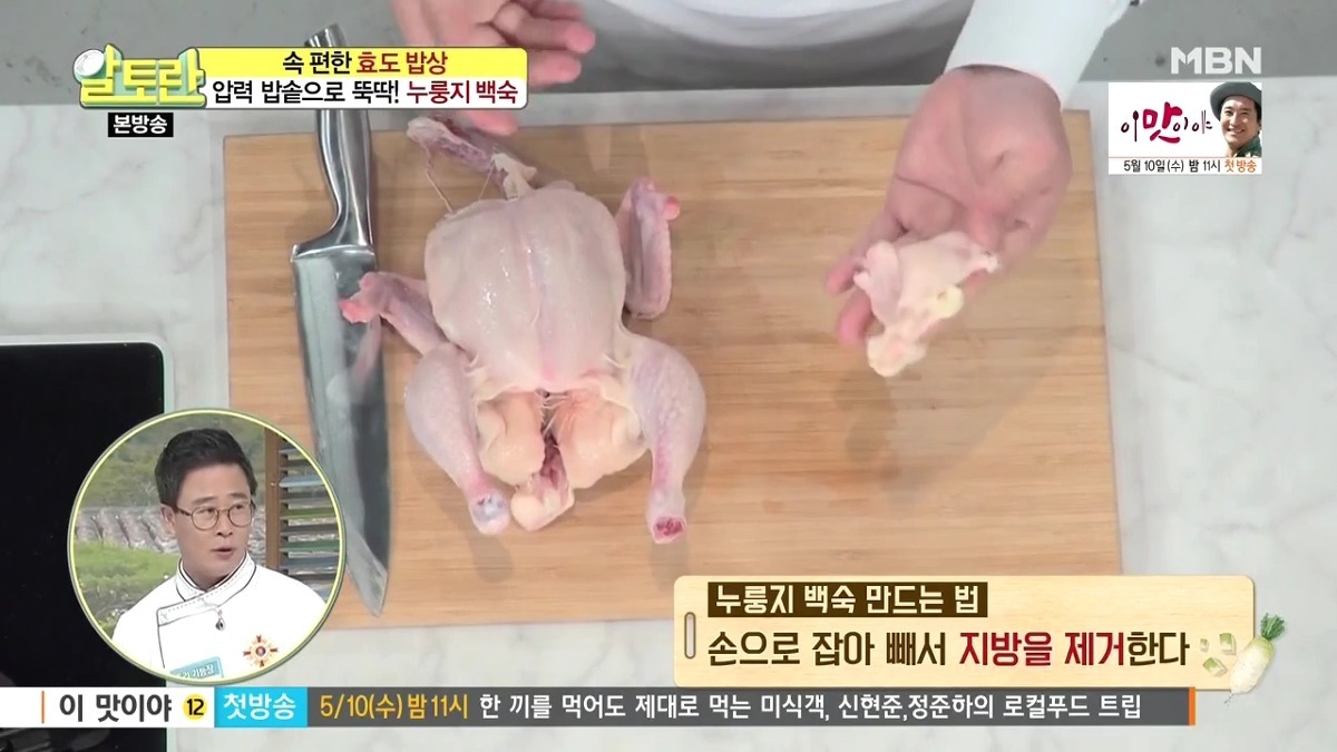 10. 숙성된 닭은 배 부분이 위를 향하도록 놓고, 그 위에 올려주세요.