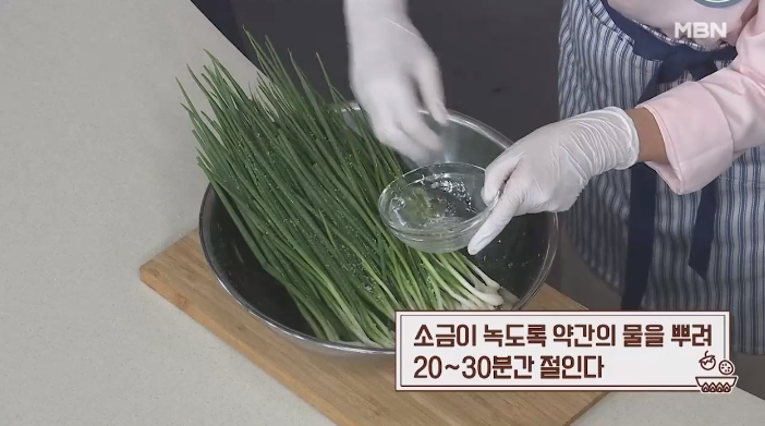 7. 소금이 잘 녹도록 약간의 물을 넣은 뒤, 20~30분 정도 절여주세요.