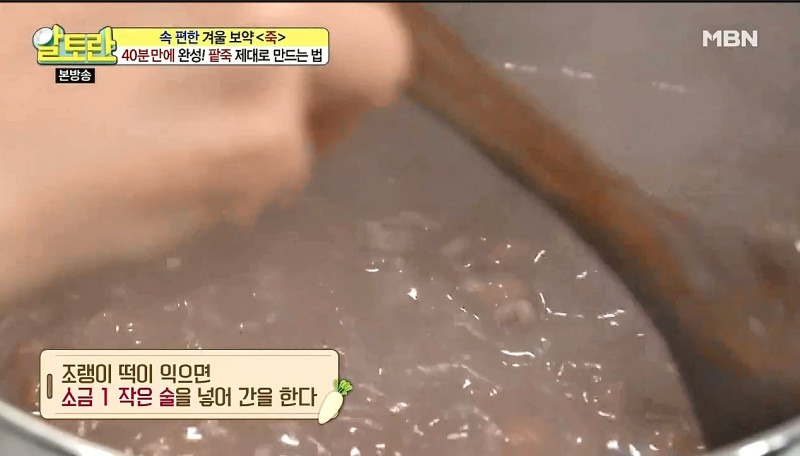 이렇게 10분간 첫 번째 삶기를 진행합니다. 동지 팥죽 만드는 법의 핵심은 소금을 잘 녹이기 위해 저어주는 것이며, 떫은 맛이 충분히 날아가도록 반드시 뚜껑을 열고 삶아야 한다는 점을 기억해 주세요. 조리 중에 팥물이 튈 수 있기 때문에 깊은 냄비를 사용하는 것이 훨씬 편하고 안전하다고 합니다.