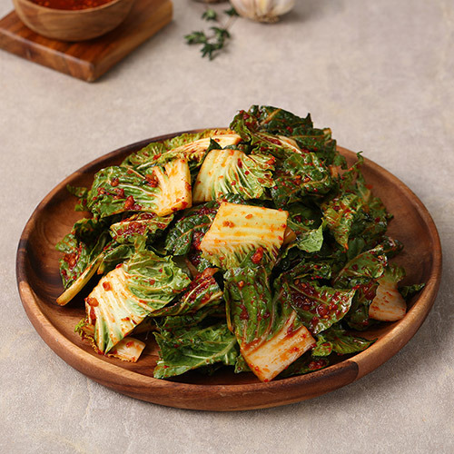 봄동은 잎을 활짝 펼치며 자라기 때문에 속잎까지 햇빛을 골고루 받아 대부분이 초록빛을 띱니다. 가운데 잎이 연한 노란색을 띠는 경우도 있지만, 특별히 그 여부를 따져 선택할 필요는 없습니다. 일반적으로 상품성을 따지는 결구형 배추와 달리, 봄동은 잎이 짧고 두꺼워 더욱 아삭하고 쫄깃한 식감을 자랑합니다.