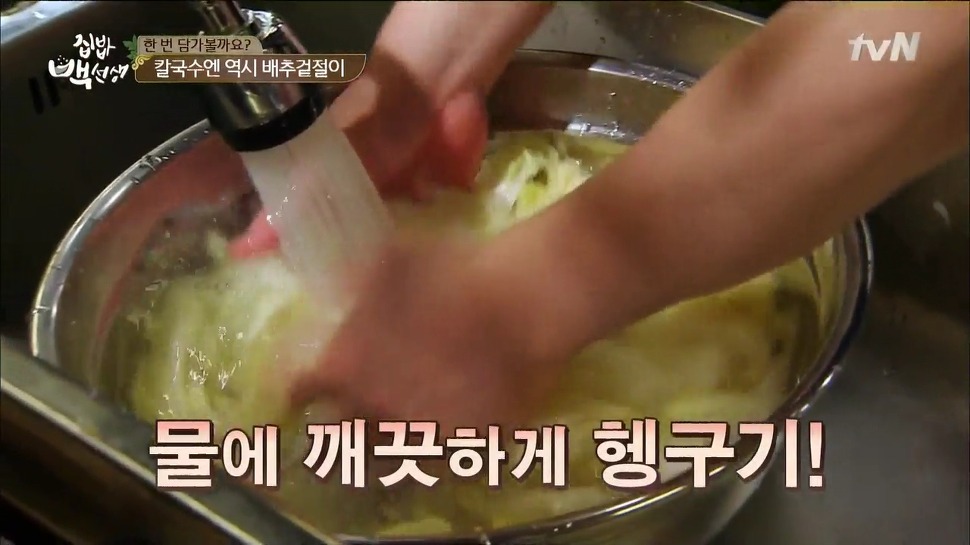 배추의 두꺼운 부분을 살짝 꺾어봤을 때 안이 부서지지 않고 부드럽게 휘어진다면 잘 절여진 상태라고 하니 참고해 주세요.