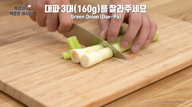 5. 깨끗이 씻은 당근은 약 1cm 두께로 썰어주시고, 대파는 2~3cm 길이로 통으로 잘라 준비해주세요.