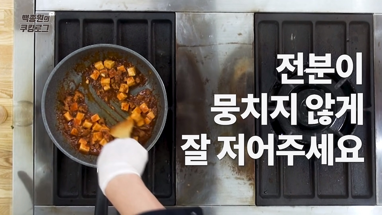 전분물을 한 번에 넣으면 뭉칠 수 있기 때문에, 조금씩 나눠 넣는 것이 중요합니다. 바로 이 점이 백종원 마파두부 황금레시피의 핵심 포인트 중 하나예요!