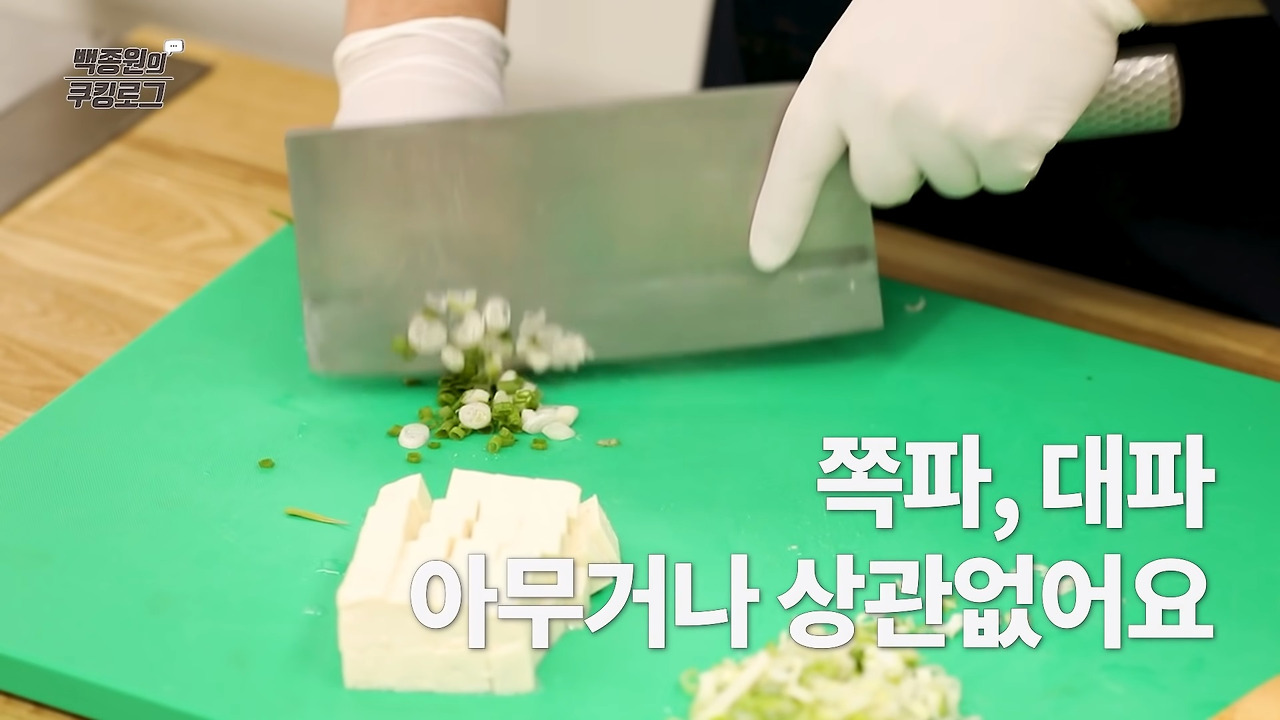 대파는 기름에 볶을 때 사용할 것이므로 링 모양으로 썰고, 쪽파는 송송 썰어 준비해 주세요. 냉장고에 남은 다른 채소가 있다면 함께 활용해보는 것도 좋아요. 당근이나 애호박 등, 취향에 따라 추가하셔도 좋습니다.