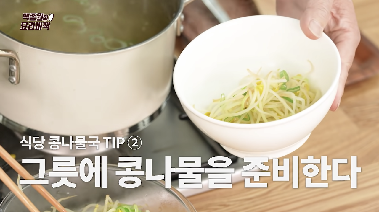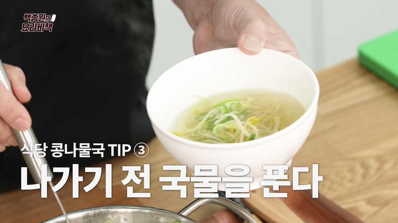 백종원 셰프가 알려준 식당 스타일의 콩나물국 비법은 국물과 건더기를 따로 사용하는 것이라고 합니다.