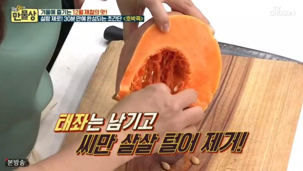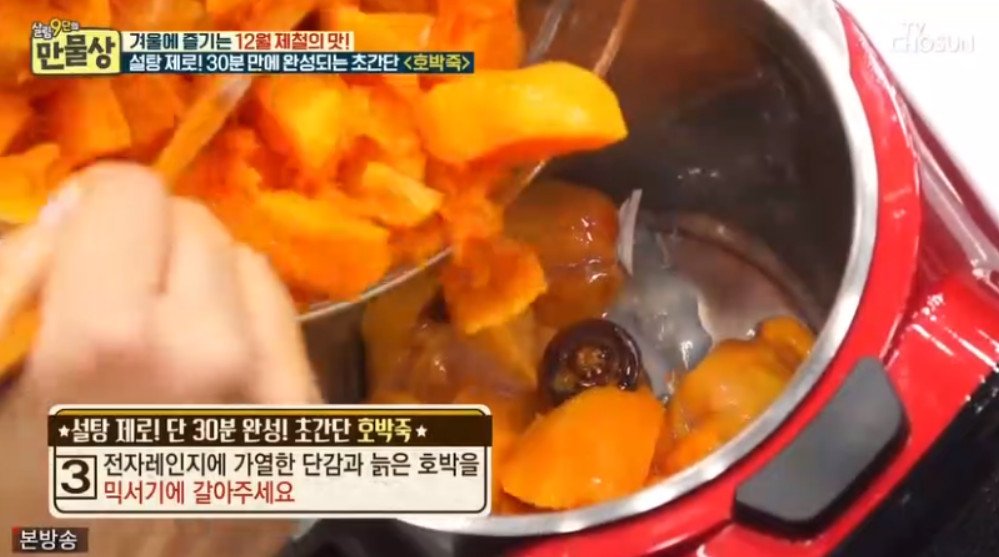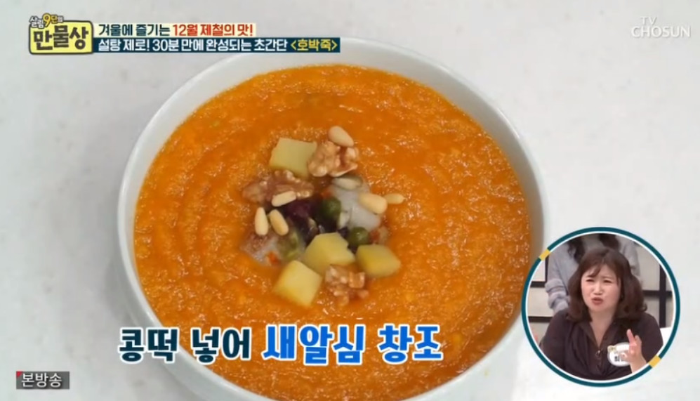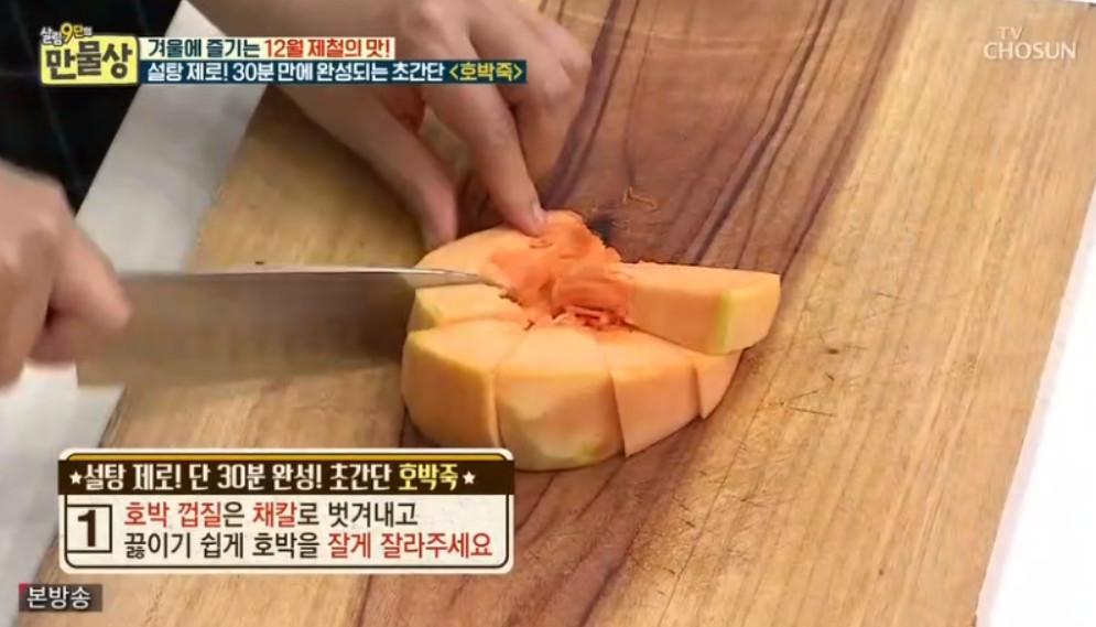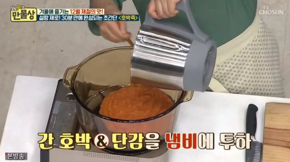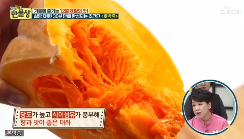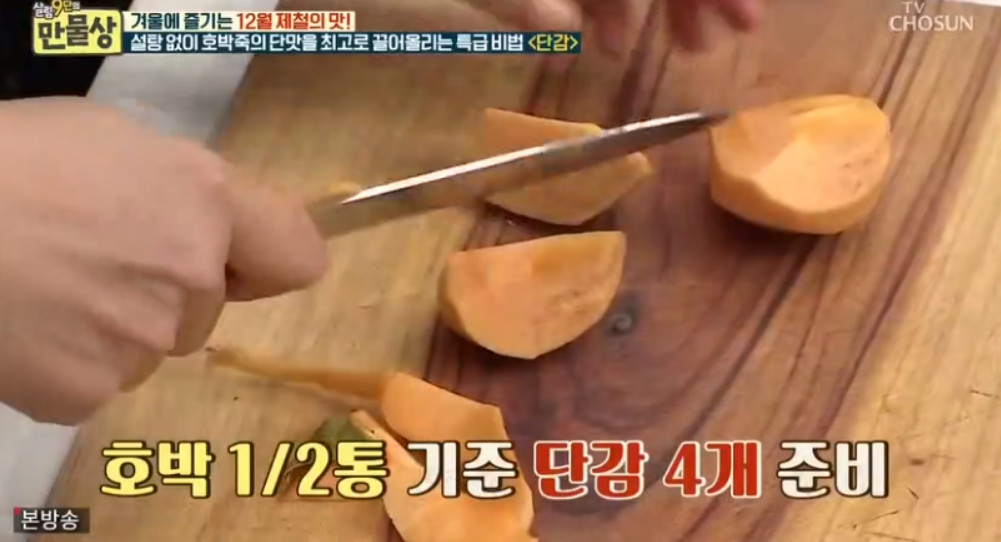 오늘 소개할 레시피에는 설탕이 포함되지 않는데요, 대신 설탕 없이 호박죽의 단맛을 극대화할 수 있는 이보은 요리 연구가의 특별한 비법은 바로 단감이라고 합니다.