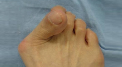 엄지발가락이 두 번째 발가락 쪽으로 과도하게 휘고, 엄지발가락과 연결되는 중족골이 반대로 안쪽으로 기울어지며 발가락이 발등 쪽으로 휘거나 회전(엄지발가락 축을 중심으로 내측으로 회전; 회내)하는 삼차원적인 변형을 말합니다.