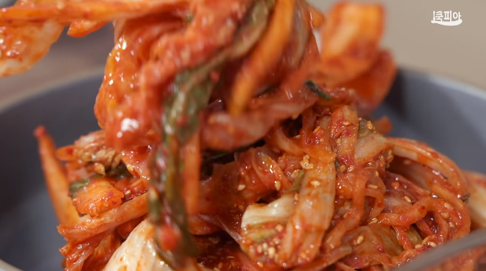 (9) 배추김치 1/2포기를 손으로 쭉쭉 찢어준다.