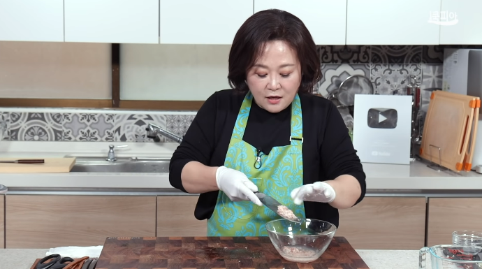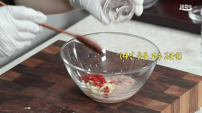 (5) 새우젓을 곱게 다진 뒤 볼에 담고 생수 3큰술을 넣어준다.