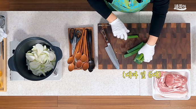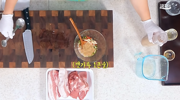 (구입한 돼지고기 통목살과 삼겹살은 20분간 찬물에 담가 핏물을 빼주세요)
