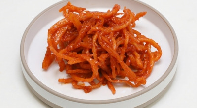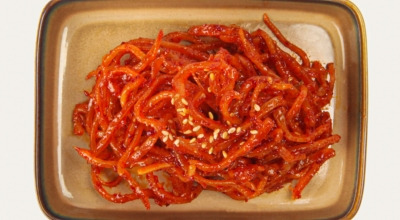 오징어채 또는 진미채라고 불리는데요, 이름처럼 오징어를 잘게 찢어 건조한 건어물의 한 종류입니다. 진미채는 설탕, 소금, 구연산 등의 첨가물을 넣어 건조시켜 달콤하면서도 짭조름한 맛을 내요. 진미채는 두 가지 종류로 나뉘는데, 홍진미채와 백진미채입니다. 홍진미채는 오징어 껍질을 벗기지 않아 붉은색을 띠고, 백진미채는 껍질을 벗겨 흰색을 띠는 것이 특징입니다.